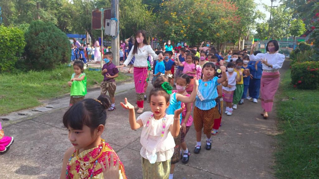 7-8พฤศจิกายน 2565 นางงามจิตร แกล้วกล้า ผู้อำนวยการสถานศึกษา พร้อมด้วยคณะครูและเด็กๆร่วมกันจัดประสบการณ์การเรียนรู้วันลอยกระทง สืบสานอนุรักษ์ประเพณีไทย รักษาสิ่งแวดล้อม ใช้วัสดุธรรมชาติ ใช้เศษวัสดุเหลือใช้