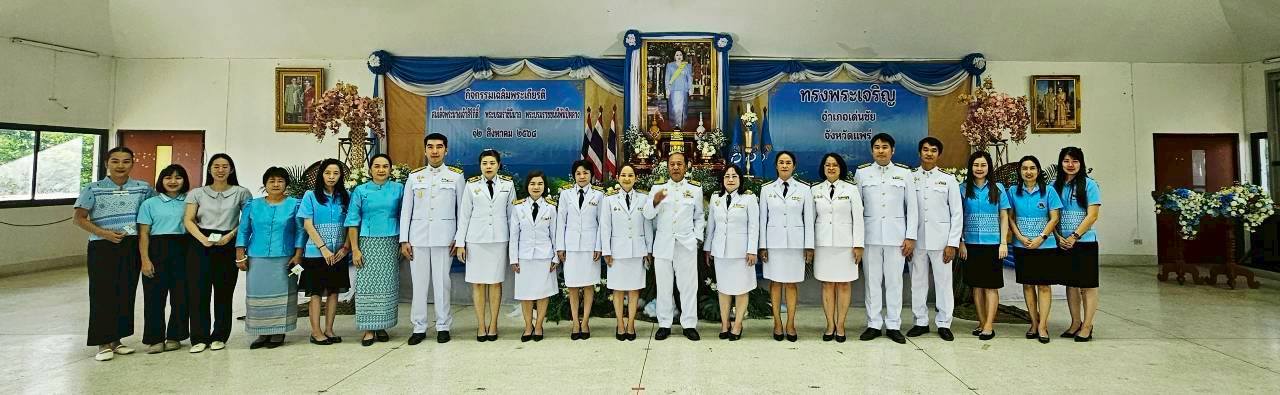 12 สิงหาคม 2568 เวลา17.00น.-18.30น. นางงามจิตร แกล้วกล้า ผู้อำนวยการสถานศึกษา พร้อมด้วยตัวแทนคณะครูและบุคลากรเข้าร่วมพิธีถวายเครื่องราชสักการะและวางพานพุ่ม และพิธีจุดเทียนถวายพระพรชัยมงคล สมเด็จพระนางเจ้าสิริกิติ์ พระบรมราชินีนาถ พระบรมราชชนนีพันปีหลวง เนื่องในโอกาสวันเฉลิมพระชนมพรรษา 12 สิงหาคม 2568โดยมี นายประจักร์ จินดาจำรูญ นายอำเภอเด่นชัย เป็นประธานในพิธีฯ ณ หอประชุมอำเภอเด่นชัย ตำบลเด่นชัย อำเภอเด่นชัย จังหวัดแพร่